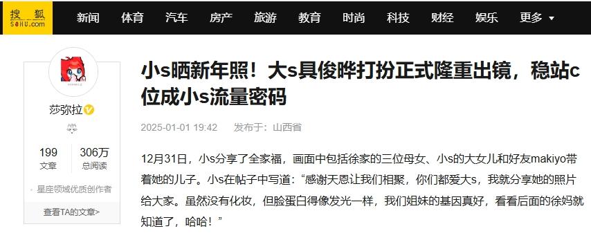 大S在社交媒体上总是一副姐非常好的样子,婚姻幸福家庭美满。舆论之下,具俊晔发文解释他自己的外网账号是被盗号了,这理由与他没出席大S生日时一样蹩脚。
