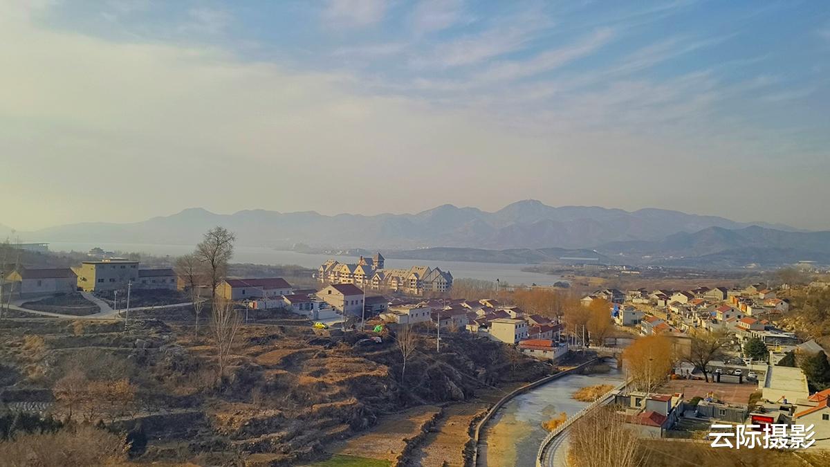 北方树木都没树叶,其中建筑和湖泊的点缀让山里的村庄更有意境。