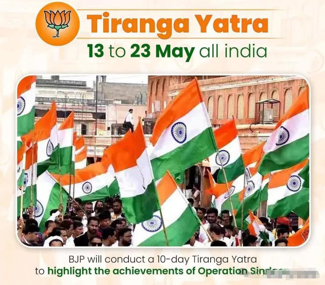 在经历了一场持续4天的激烈冲突后,印度似乎并未沉浸在战后的疲惫与反思中。相反,他们决定在全国范围内启动一场为期10天的爱国胜利宣讲活动,从5月13日开始,一直持续到5月23日。这一活动的目的是将所谓的“朱砂行动”的成就传递给每一个印度人,以此彰显印度的“胜利”。