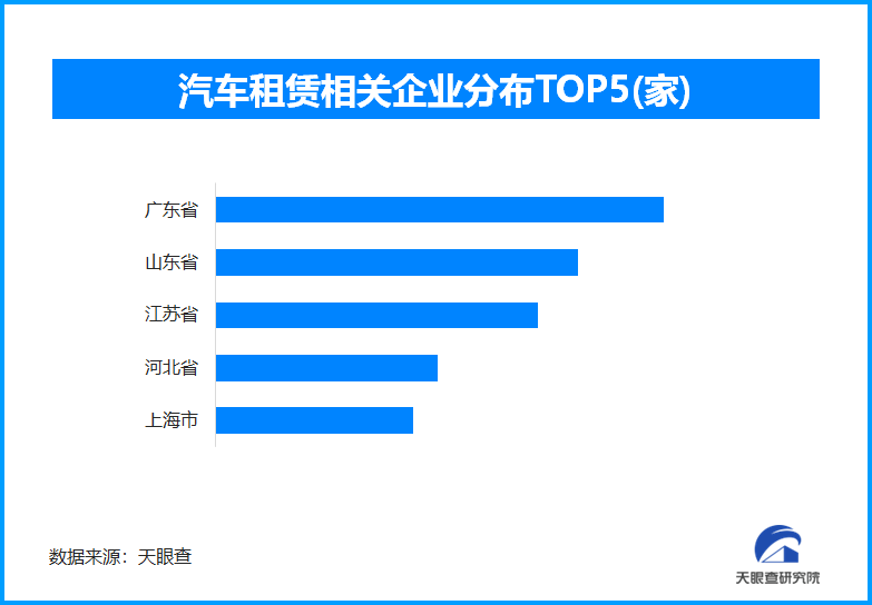 从区域分布来看,广东省、山东省、江苏省汽车租赁相关企业数量位居前列,分别为超9.8万余家、7.9万余家和7万余家。