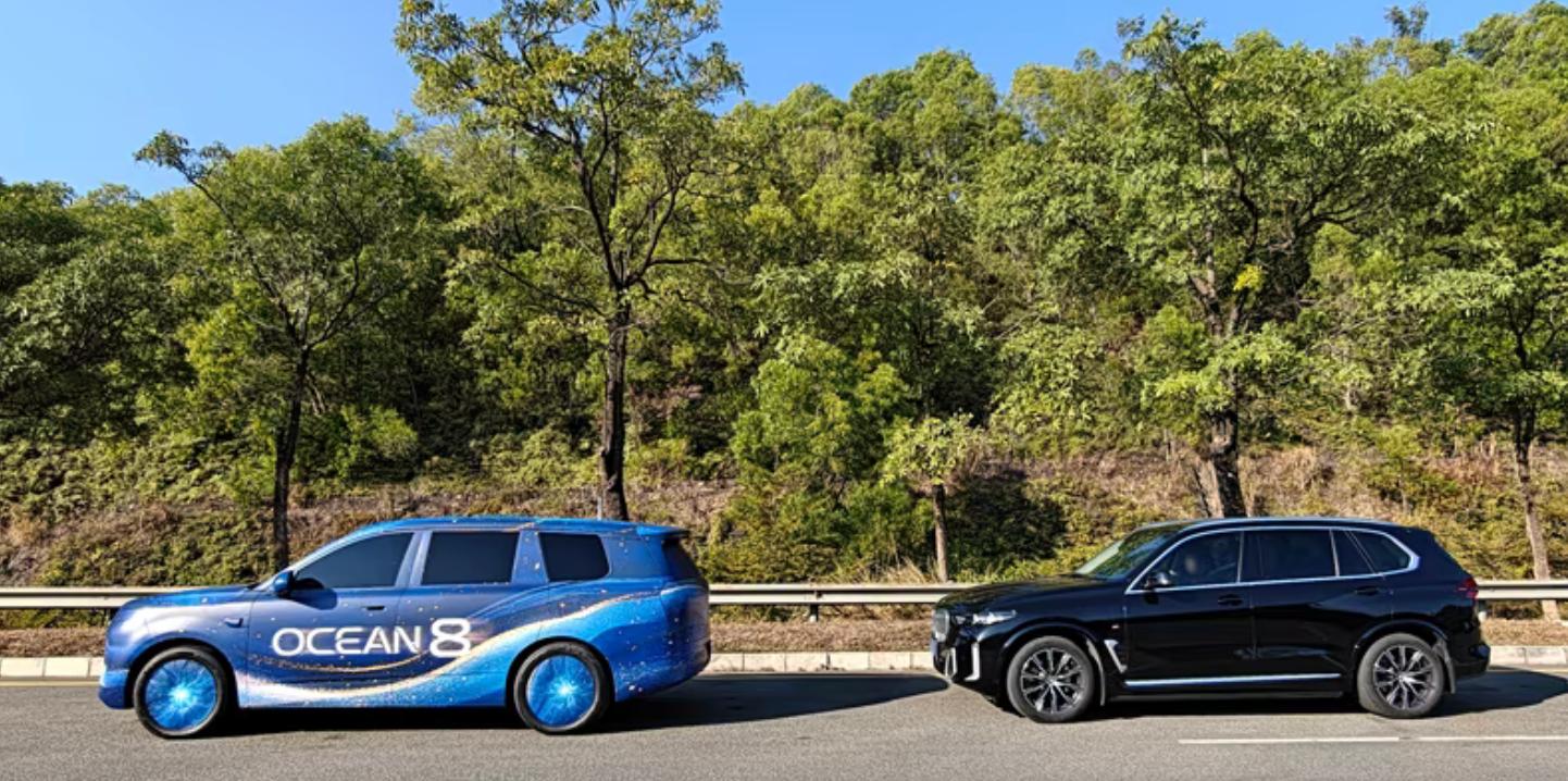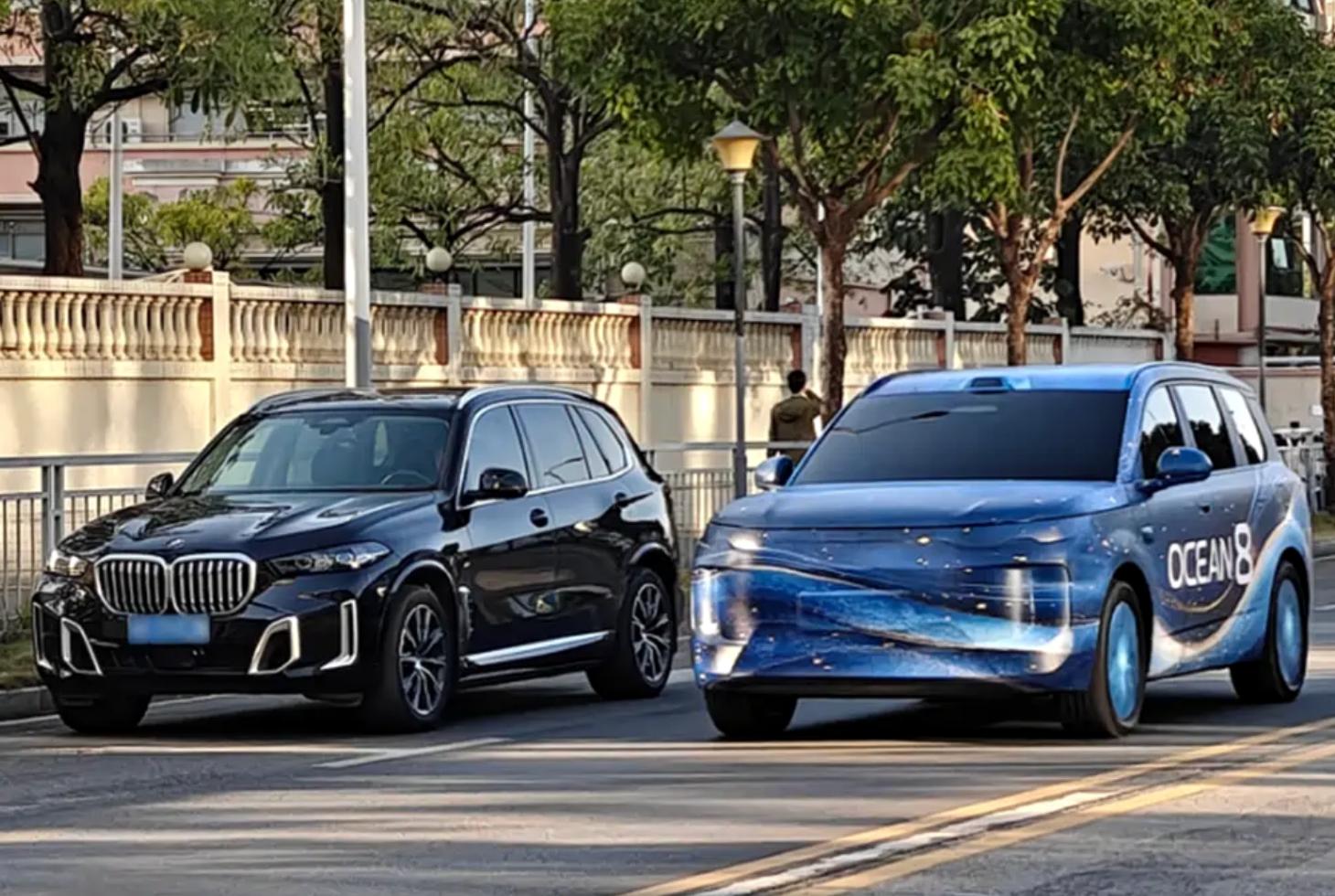 结合海狮08的官方谍照和渲染图,我感觉它的外观会比王朝网的唐L更好看些,平直的车体造型+酷似理想L系列的方正设计,看起来更贵价些。可以看下它跟宝马X5停在一起的图片,是不是气场丝毫不落下风?
