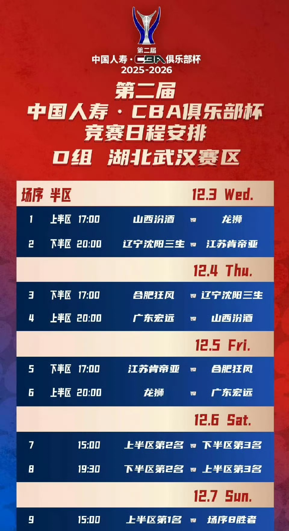 CBA俱乐部杯淘汰赛正式开打,6号共计8场比赛,两场循环赛六场淘汰赛,16支球队捉对厮杀,更加残酷的考验要开始了。本次俱乐部杯三大平台免费直播,分别是咪咕视频、抖音和央视频,另外,山东男篮的球迷可以观看山东休闲体育频道,本赛季山东男篮的全部比赛,体育频道都会直播,包括常规赛。