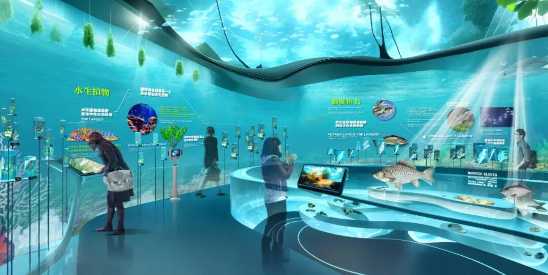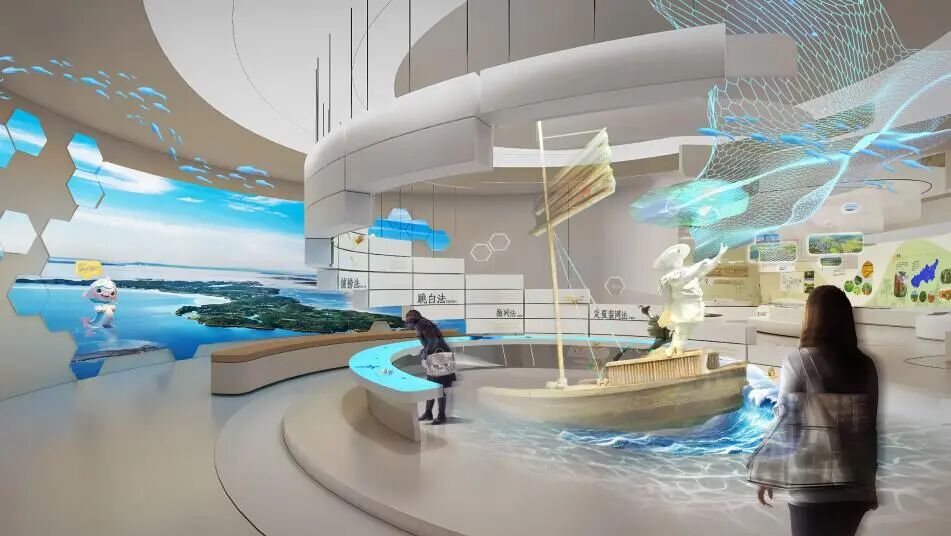 九江鄱阳湖水生生物展馆中,第三展厅运用AR互动展项,帮助观众理解彭泽鲫选育技术、四大家鱼全人工繁育、团头纺新品种“华海1号”等重点品种培育的详情。用户借助触摸屏、手势或语音指令与这些虚拟对象互动,创造出既真实又具交互性的体验。