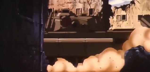 例如在机器人动画最狂热的80年代,许多机器人动画都会植入现代的武器装备来作为参照物,以此衬托机器人的火力强度。例如《苹果核战记》ova动画里魔改过的豹1坦克;再比如庵野秀明参与的机器人动画《金属外壳》里,动画利用极为精细的机械内构勾勒了74式坦克等等。