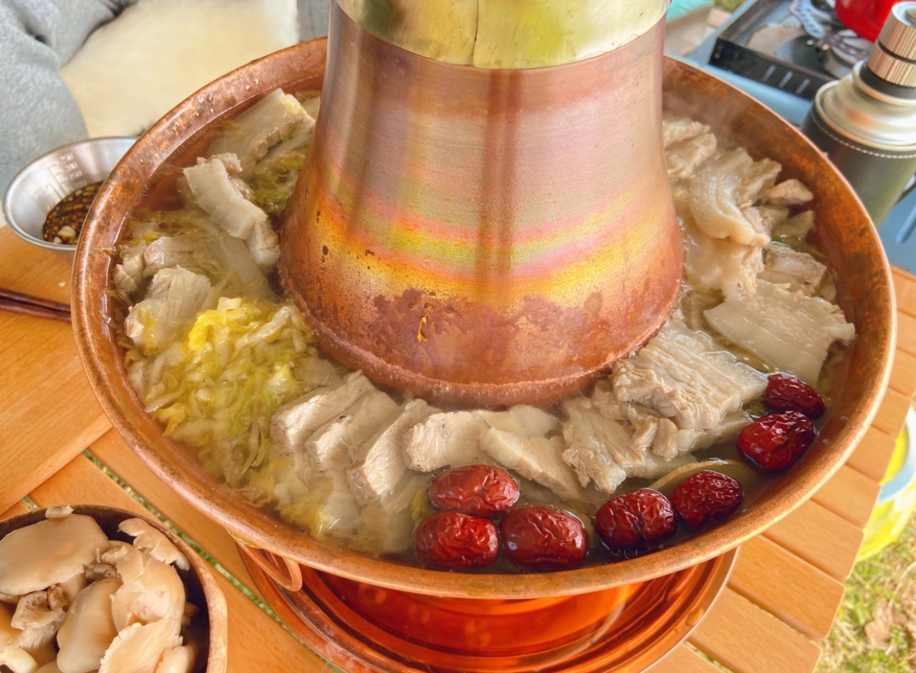 酸菜白肉火锅的涮菜讲究"混搭艺术"。冻豆腐是必备配角,提前两小时从冰箱取出,切块后放在漏勺里,让它在酸菜汤里慢慢"喝饱"汤汁。粉条要选土豆粉,提前泡软后用剪刀剪成段,涮煮三分钟就会变得晶莹剔透。