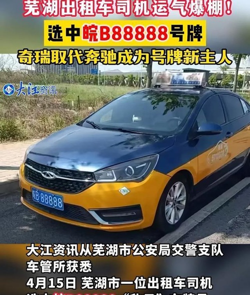 "这运气也太绝了吧!路边拉活的出租车居然摇中了‘皖B88888’,这不跟买彩票中头奖似的吗?"4月15日芜湖街头,的哥老王举着方向盘乐开了花。当天他刚办完新车上牌手续,就因为这串闪亮亮的数字车牌成了全城焦点。这场"天降横财"般的奇遇,瞬间点燃了整座城市的八卦热情——到底是人品爆发还是暗藏玄机?咱们今天就来唠唠这出街头版"欧皇降临"记。