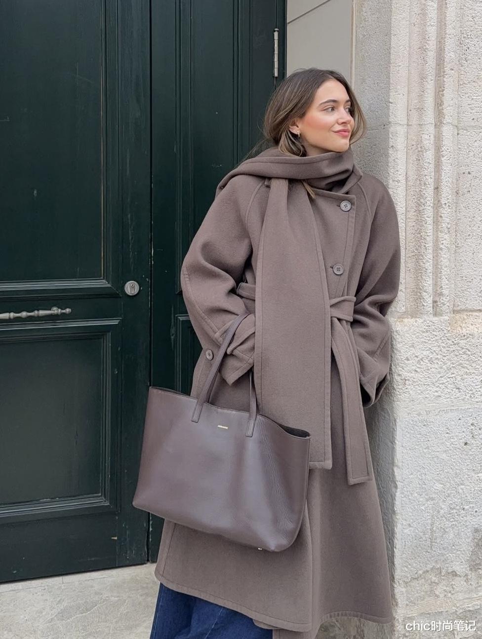 羊绒大衣不论是法式穿搭还是其他风格的穿搭都能有效适配,垂坠感与质感并存的大衣穿上就自带氛围感,秋冬季节的棕色系大衣把优雅与松弛有效展现。