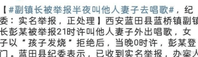 西安蓝桥镇的副镇长彭聪涛被爆出大料,大半夜9点过叫别人的老婆去KTV唱歌。这女的因为孩子生病了就拒绝了,举报人也表现出不满的情绪了。