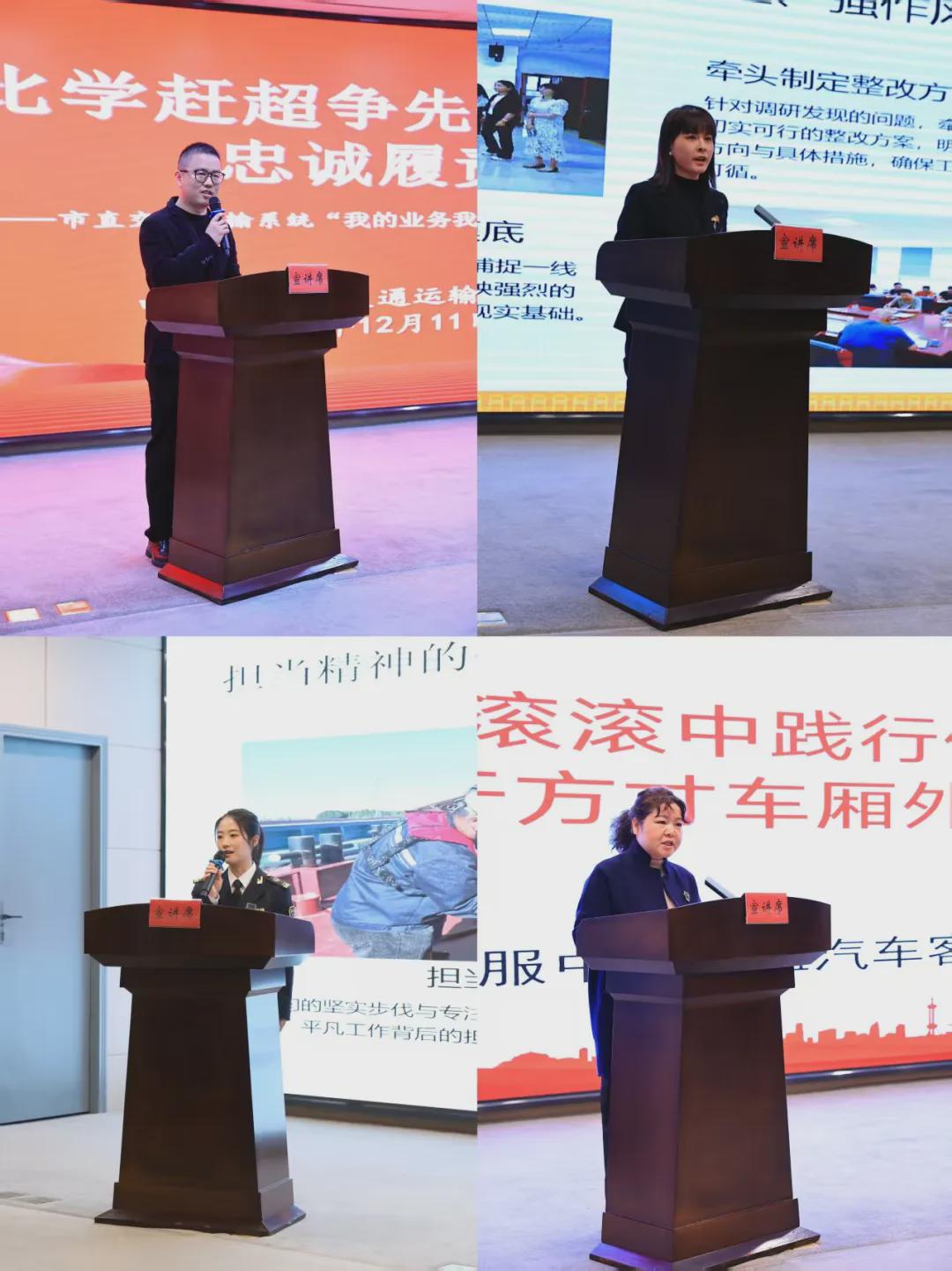 经过各单位精心挑选推荐,来自局机关、局属各单位的19名业务骨干走上宣讲台,立足本职岗位,紧扣主责主业,分享心得体会,展现了交通运输系统干部职工比学赶超、忠诚履责、勇当先锋的精神风貌。在家局党组班子成员、调研员,局机关全体人员,局属各单位副科级以上干部现场聆听了宣讲比赛。市交通运输局党组成员、副局长唐书安从“扣题准、体会深、组织好、示范强”等四个方面对宣讲比赛作了即兴点评。