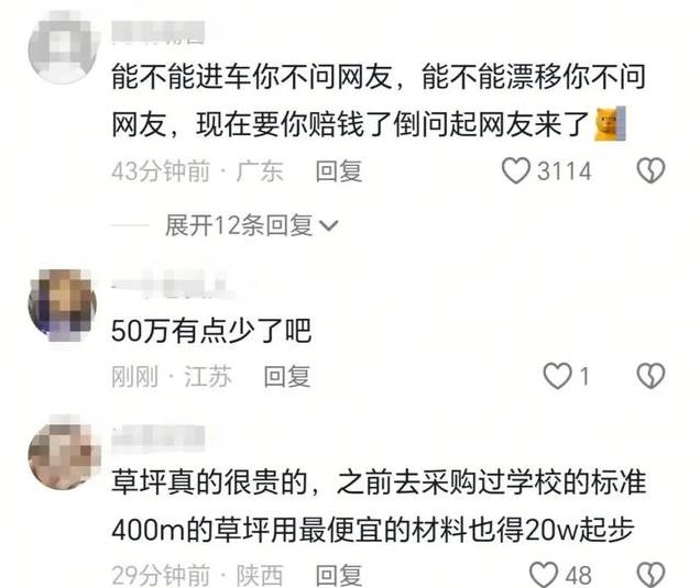 学校相关部门迅速介入,面对【漂移哥】的现场【表演】,校方提出了一项惊人的赔偿要求——50万元,用于更换受损草坪。