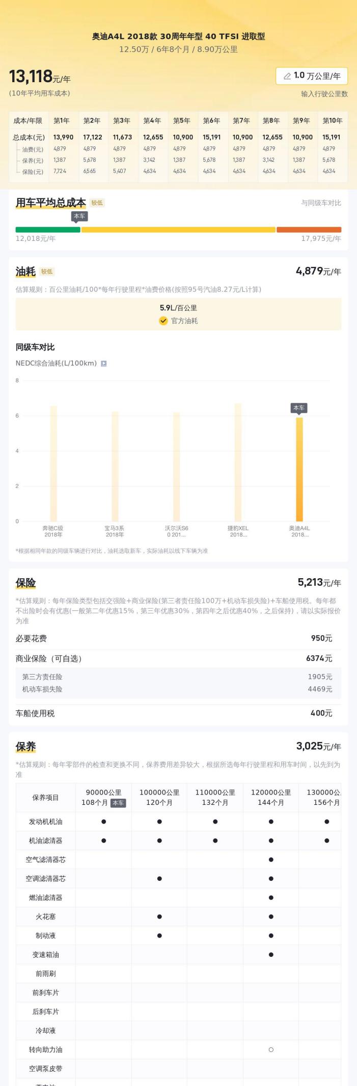 除了车辆本身的因素,我们还需要考虑一些其他的费用,例如保险、保养、维修等等。根据估算,这辆车的年均综合用车成本大约在1.3万元左右。当然,实际的费用开销会根据车主的用车习惯和保养情况而有所不同。
