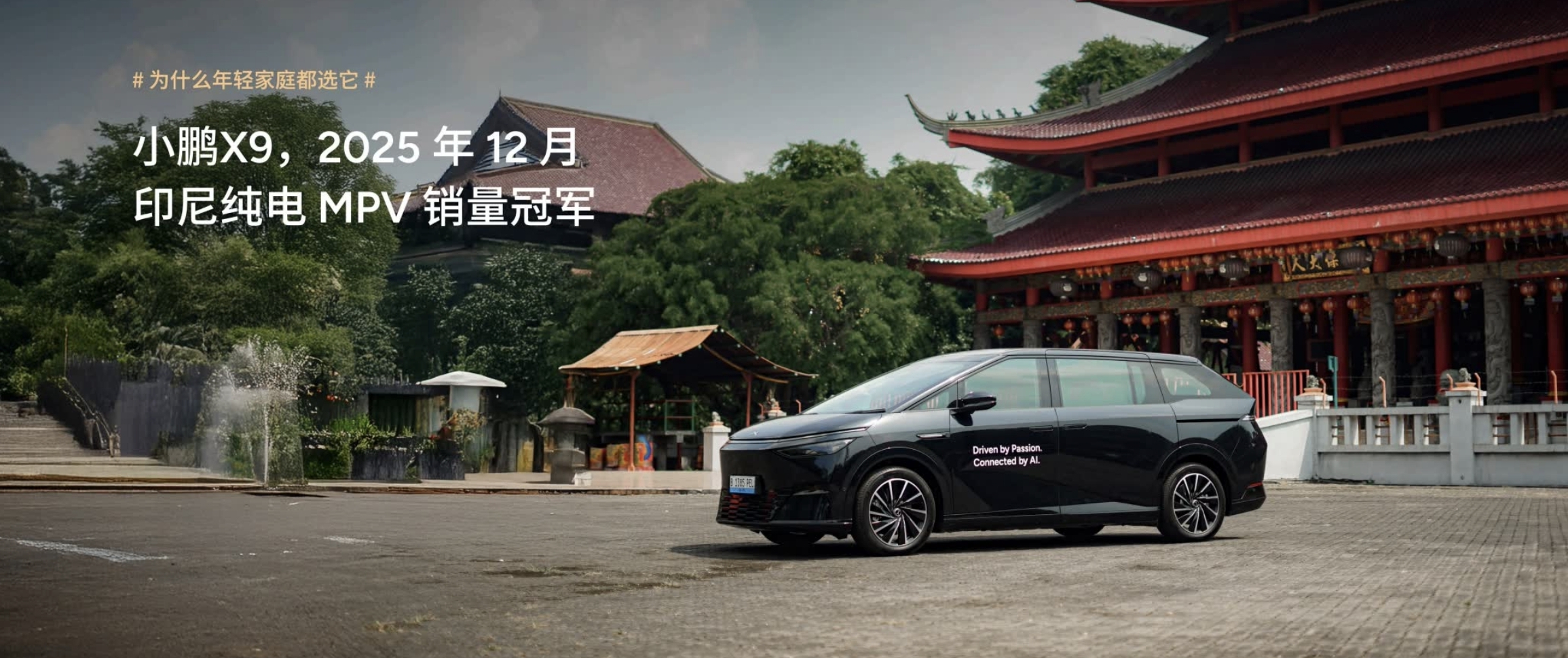 同时,小鹏X9还是2025年下半年香港市场MPV销量冠军、2025年12月印尼纯电动MPV销量冠军。