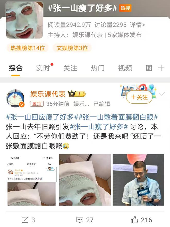 其实早在几个月之前,关于张一山“暴瘦”的新闻就曾冲上过热榜。