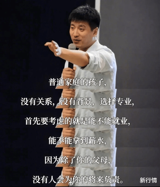他说:“普通家庭的孩子,没有关系,没有背景,选择专业,首先要考虑的就是能不能就业,能不能拿到薪水,因为除了你的父母,没有人会为你的将来负责。”