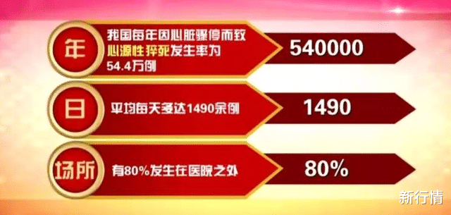 国家心血管病中心数据显示,而包括心源性猝死在内的各类猝死案例中,有80%发生在医院之外,抢救成功率不足1%,每延迟1分钟抢救,生存率下降7%-10%。