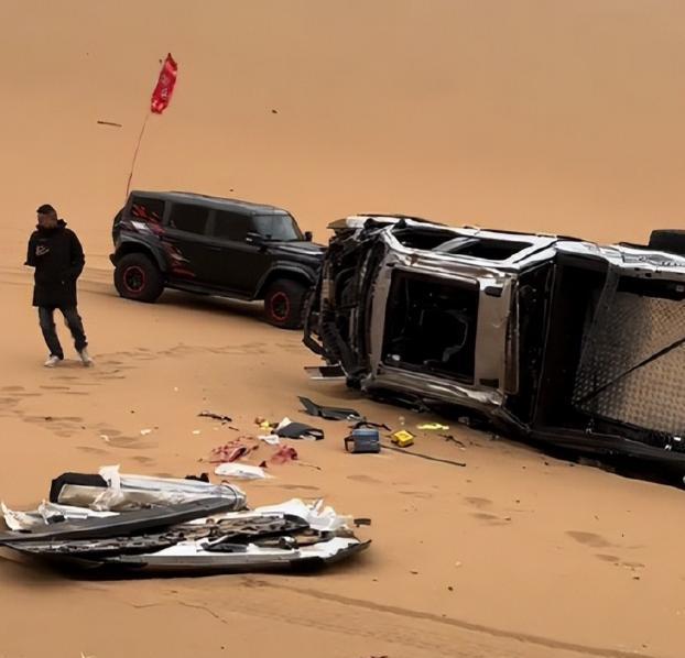 最后,那辆车狠狠地砸在了沙丘下面,车里的两个人当时就没了生命体征。这次的事儿和之前那辆福特F-150猛禽出的事儿太像了,简直就是一模一样,又给大伙儿提了个大醒。