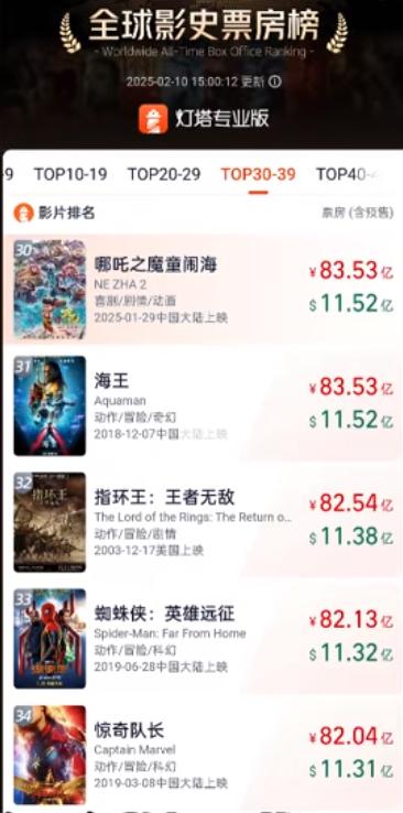 在全球电影票房排行榜上崭露头角,成功跻身第28名!