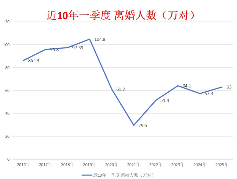 更耐人寻味的是,在离婚冷静期实施五年后,离婚登记数却逆势攀升至63万对。