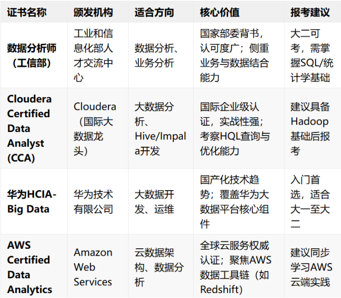 二、2026年大数据专业高含金量证书推荐