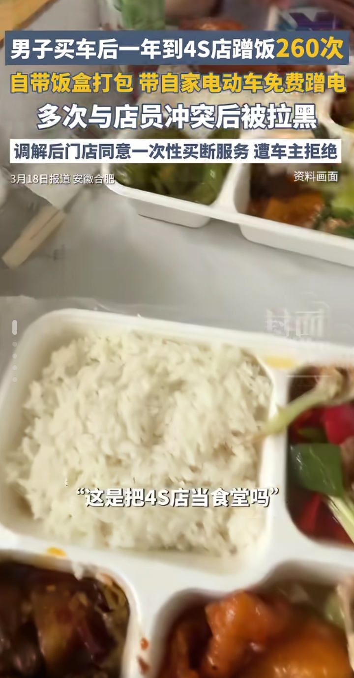 庞先生于2024年9月在比亚迪4S店买了车,门店本来是想提升客户体验,所以就贴心提供免费洗车、充电、到店吃饭的增值服务,本来是商家的诚意,是给车主的福利,可庞先生倒好,直接就把这份诚意当场理所当然,甚至变本加厉占便宜。