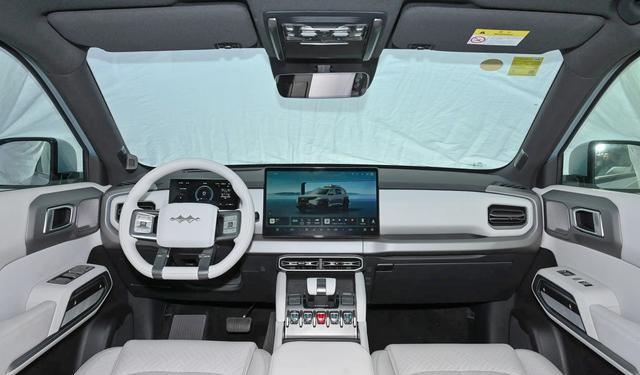 值得一提的是,这款车的内饰设计也同样不容小觑。方程豹钛3的车内配备了一个宽敞舒适的座椅布局,且所有座椅均采用仿皮材料包裹,不仅看起来高档且触感舒适。主驾座椅不仅支持电动调节,高配车型还提供了加热与通风功能。车内的技术配置也颇具现代感,12.6英寸中控屏和液晶仪表盘的设计不仅提升了视觉体验,也让所有科技元素都在驾驶者眼前尽现无遗。