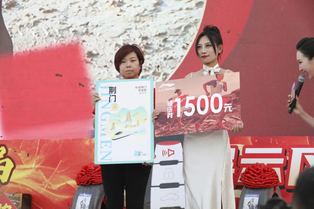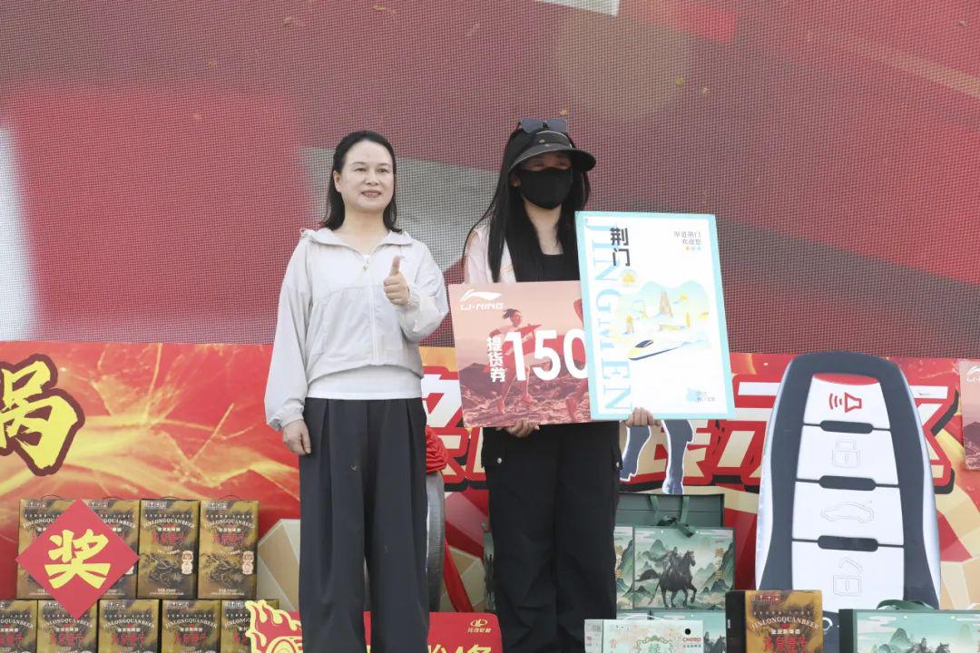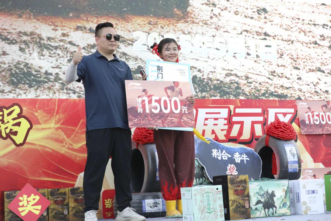 获奖车手获得了李宁服装代金券、金龙泉啤酒三箱、“一越千里”文创产品一份、荆门景区大礼包一份以及湖北炎奇农业土特产一份。“三蹦子”奖得主王乔乔还获得了奖品玲珑轮胎4条,“最牛”奖得主网红“大头说车”获得了华中农业提供的奖品安格斯牛一头,“幕后英雄奖”得主蓝天应急救援中心郑家兵救援小组获得了奖品长城汽车金刚炮皮卡一辆。湖北玲珑轮胎有限公司、湖北三皮罐大健康产业集团有限公司、荆门建银威腾长城皮卡专营店、华中农业股份有限公司、英博金龙泉啤酒(湖北)有限公司、荆门市润森农业发展有限公司相关负责人参加活动并为获奖车手颁奖。
