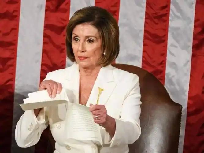 回头再看那段2020年震撼全球的画面——佩洛西站在众议院高台上,当着全世界的面,面无表情地将特朗普的国情咨文讲稿撕成两半。那曾被视为民主党对抗精神的图腾,被无数自由派媒体歌颂为“撕碎谎言”。