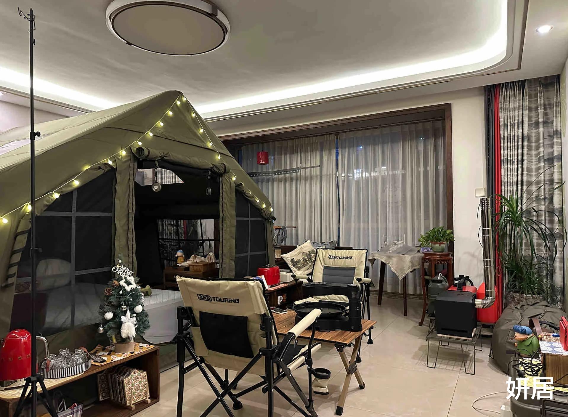 看到邻居家的客厅布置,真的要羡慕“死”了。这是朋友小草发的一个朋友圈,原来她邻居家的男人在客厅放了露营帐篷,对,没看错,是一个大帐篷!对比自己家男人,真的只会把日子过的死气沉沉,在家里只会躺在沙发上、脚架在茶几上玩手机或者蹲在厕所里半小时,和他说话也没回应,冷漠他是和谁过都这种样子,因为他本身就无趣。所以很羡慕人家的老公,有自己的爱好,把家装修得如此精彩!