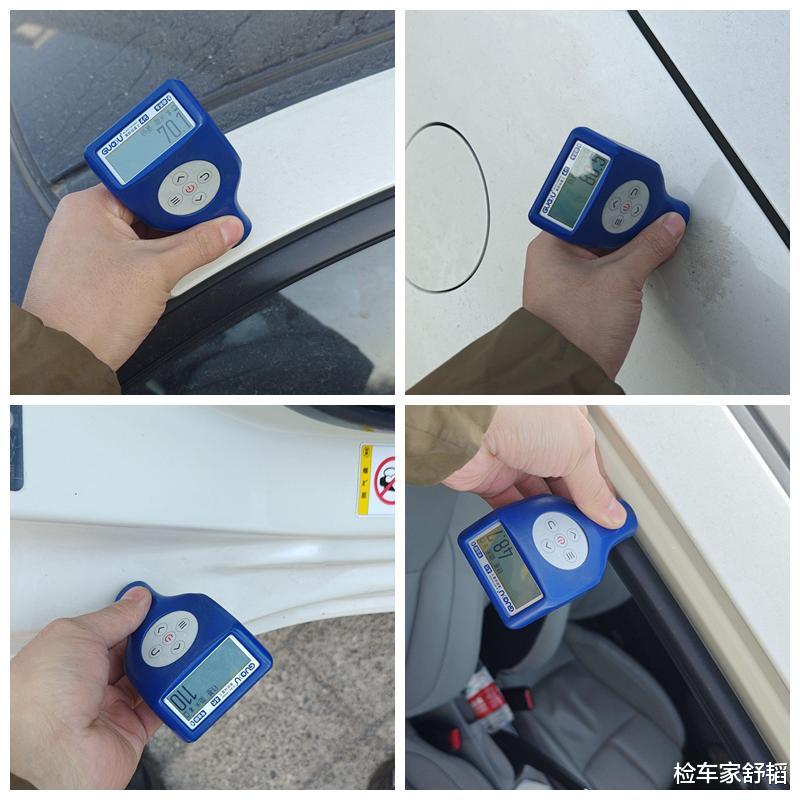 整个车身几乎都喷漆了,刮蹭最厉害的是右后翼子板,漆面厚度来到了1757μm,是正常标准的十几倍,毫无疑问,钣金整形修复了,内部骨架也有变形,不过这也不是什么大问题。