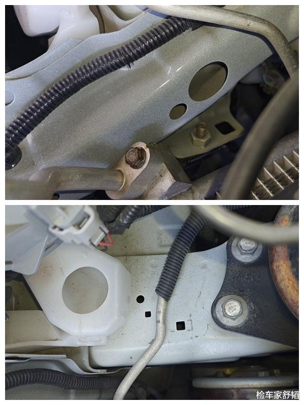 不管改装也好,事故也好,一个关键的东西就是前面纵梁有没有动,车体最重要的结构就是四梁六柱,前纵梁要是损伤修复,那按照我们鉴定标准就是重大事故车。