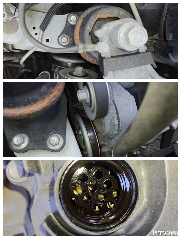 前面的纵梁,不管是从上看还是从下看,从左看还是从右看,都没问题,很坚挺,没有变形修复的痕迹。这样即使前面有事故,那么事故也不大,小事故是客户能接受的,接下来看发动机。