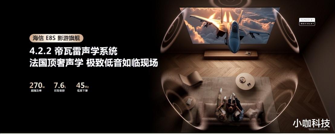 作为“全能影游旗舰”,E8S满配性能覆盖多元场景。黑曜屏Pro以1.8%超低反射率告别“窗帘依赖症”,搭配5300nits峰值亮度与杜比视界第二代技术,强光下画面依旧通透。音质搭载法国顶奢帝瓦雷4.2.2声学系统,270W功率与7.6L音腔实现45Hz澎湃低音,构建影院级声场。游戏端配备原生4K 180Hz高刷屏幕,支持330Hz疾速模式,4.7ms低延迟搭配四路满血HDMI 2.1接口,更有《影之刃零》定制模式与AI游戏妙控台。光影妙控台开放51项参数调节,兼顾普通用户与发烧友,44mm超薄机身搭配胶片纹理设计,适配家居美学。