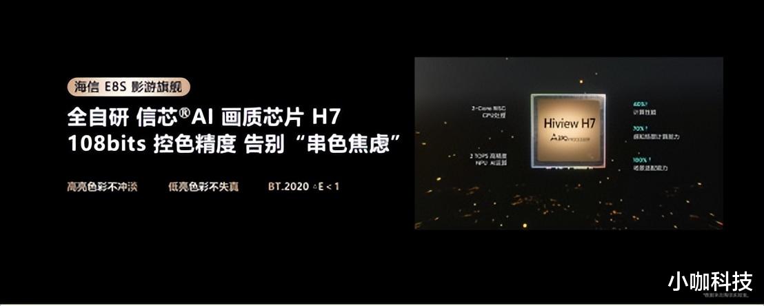 海信E8S的核心优势源于RGB-Mini LED技术的代际突破,全方位碾压单色背光方案。画质上,全自研RGB真彩背光让三原色直出无损耗,光谱纯净无杂光,覆盖100% BT.2020超广色域,色彩还原度提升20%以上;搭配全球首款RISC-V架构信芯AI画质芯片H7,首创三维光色同控技术,最高9360个控光分区配合108bits控色精度,色准ΔE<1达专业级别。同时节能40%以上契合绿色家居,硬件级减少42%有害蓝光实现护眼不偏色,车规级芯片经极限测试寿命超16万小时,耐用性远超量子点方案。