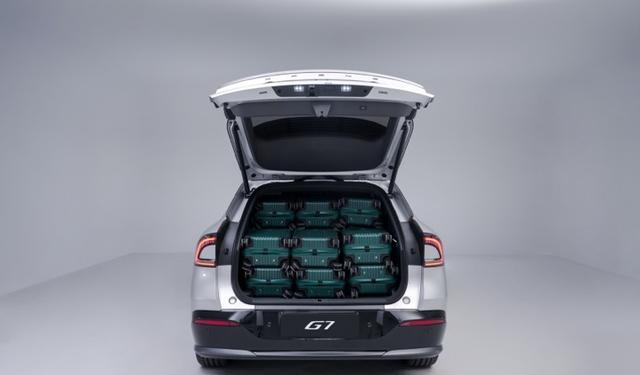 再者,大家对于汽车的需求也在悄然变化。如今消费者不仅希望汽车能够代步,更希望在汽车中找到家的感觉。小鹏G7在空间设计上可谓大刀阔斧,得房率高达88%。4892mm的车长、2890mm的轴距,释出了超大的头部空间和储物能力。我们在使用这些汽车时,无疑会面临着长途旅行的需求,此时乘客在车内的舒适度以及储物空间的灵活性便变得尤为重要。后备厢基础容积819L,放倒座椅后扩展至2277L,能够轻松容纳四个28寸行李箱及两个儿童安全座椅,这样的空间让家庭出游变得更加无忧。