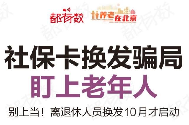 北京已经启动第三代社保卡第三批集中换发。由于本市将离退休人员社保卡换发工作安排在10月启动,不少不法分子看准这一时间差,炮制谣言对老年人实施精准诈骗。