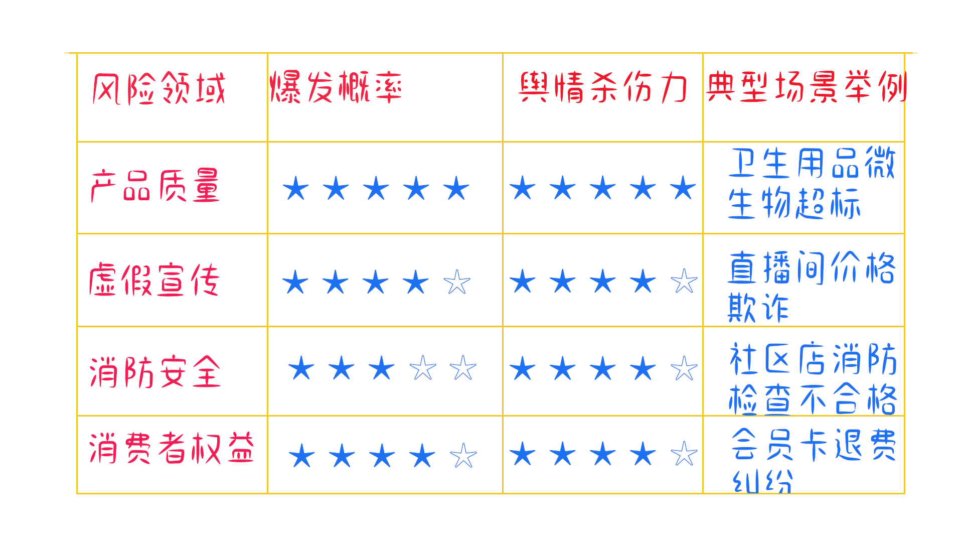 新拓展的社区店为压缩成本,可能存在消防通道堵塞、应急照明缺失等问题,尤其老旧商圈改造门店风险突出。