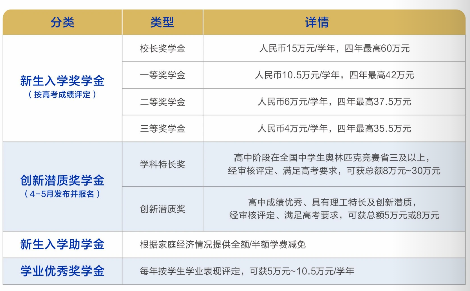 此外,针对学科特长突出和具有创新潜质的学生,学校还设立了创新潜质奖学金,最高可获30万元。对于家庭经济困难的学生,新生入学助学金则提供全额或半额学费资助,确保他们不因经济压力而放弃深造机会。