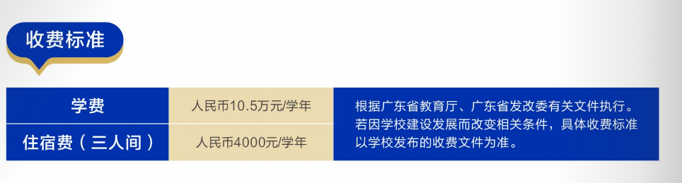 很多人看到广以的收费标准时,第一反应是“贵”。官网公示,该校的学费为10.5万元/学年,三人间住宿费4000元/学年。这个价格确实远超国内公办高校,但放在中外合作办学的大环境里,其实并不突兀。