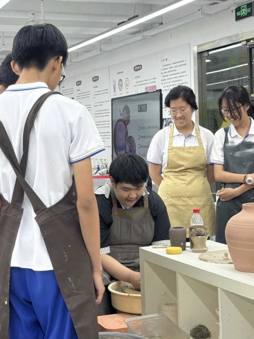 图为李哲旭正在为学生演示陶瓷制作。