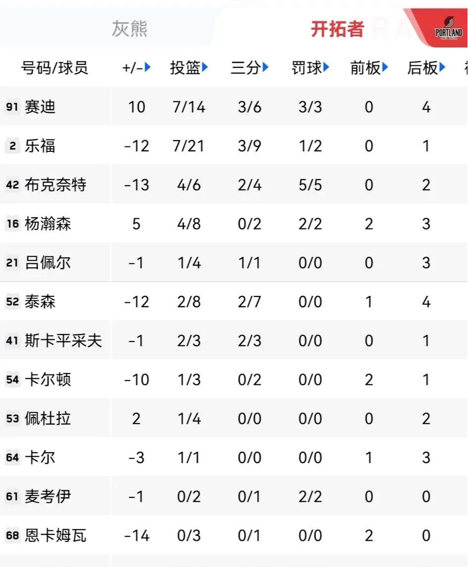 杨瀚森出战25分55秒,8投4中,三分2中0,罚球2中2得到10分5板3助1帽外加5失误3犯规,赛迪20分4板3助3断,乐福18分,布克奈特15分4助。
