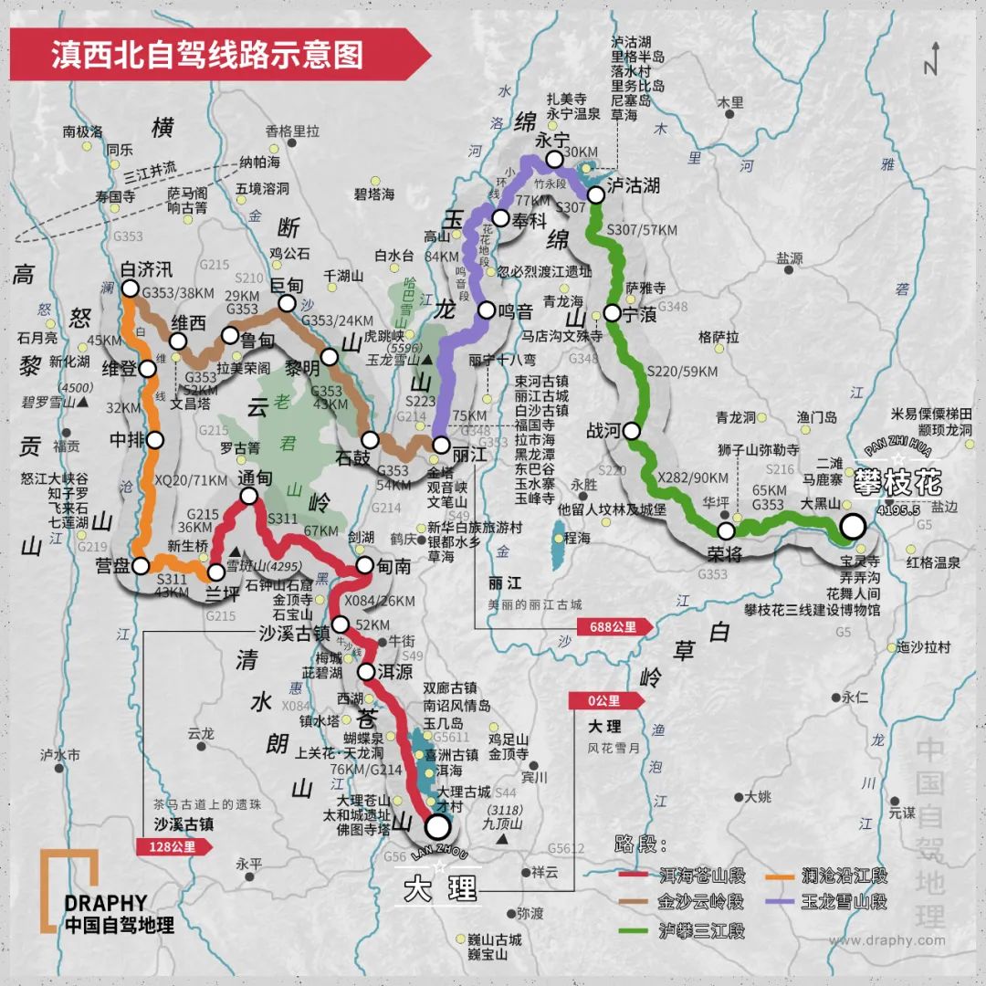 从攀枝花出发的滇西北自驾线路示意图,可以参考着走哦~