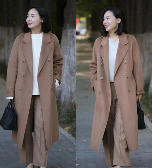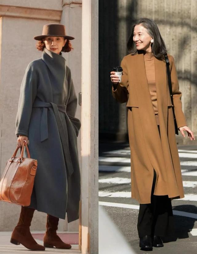 中老年女性的大衣长度并不需要一味地追求长款或者短款, 长度在膝盖及以下的高腰线长款,大衣既可以展现出高挑的身材比例,又不会过于沉闷,而且这样的长度还可以很好地遮盖住大腿和小腿的赘肉,展现出优雅的气质。