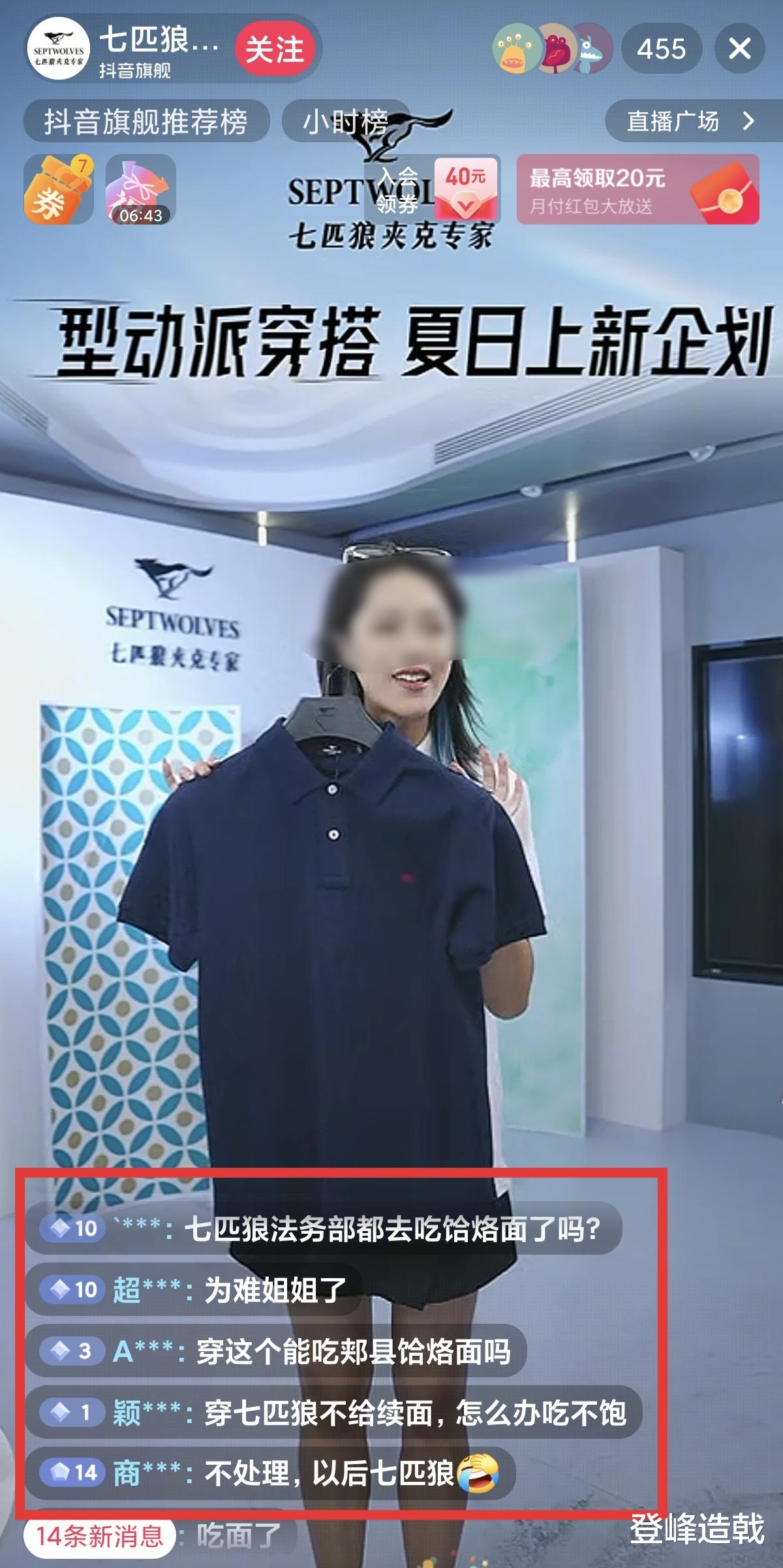 不少网友涌进七匹狼直播间开始调侃,说穿七匹狼不可以续面。