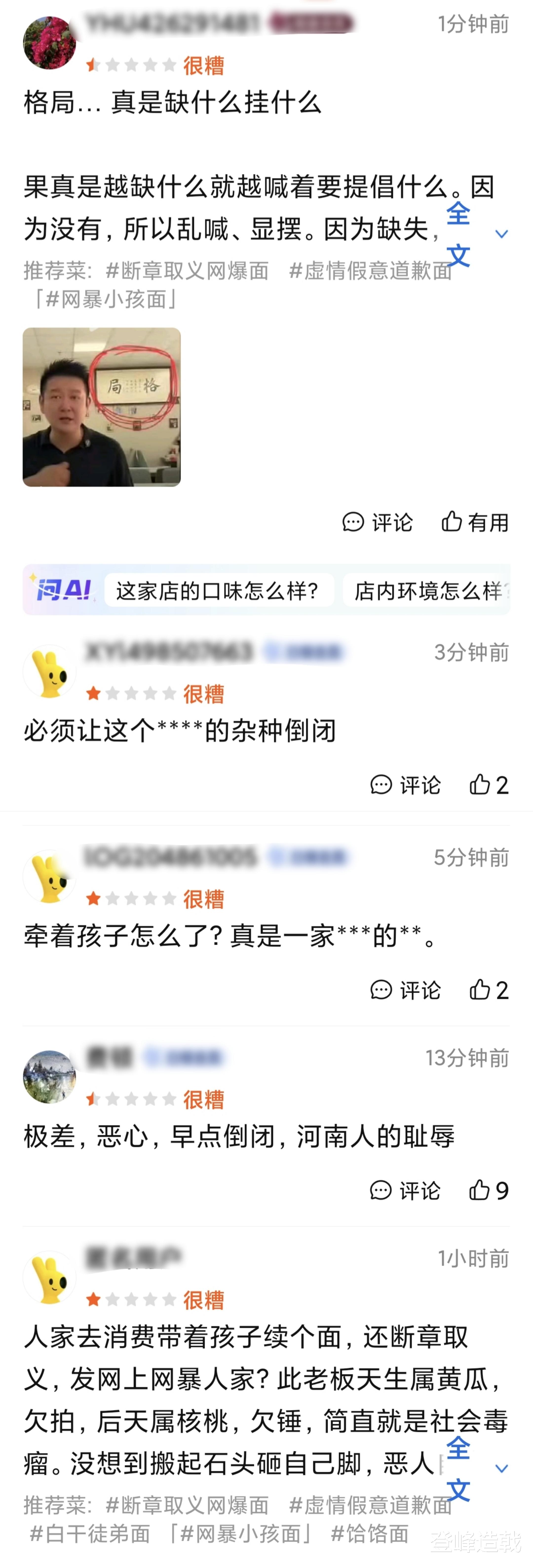 视频里,面馆老板情绪激动,直言这七个人只点了一碗面,却不停地要求续面。第三次续面时他拒绝了,结果女顾客当场翻脸,扬言要给差评。