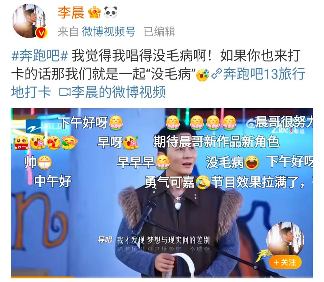 5月1日晚,李晨通过社交账号更新了自己录制《奔跑吧》的最新镜头,这也是他最近一段时间罕见更新动态,上一次更新事业的动态大概还是3月份,李晨参演了黄奕主演的电视剧《似锦》