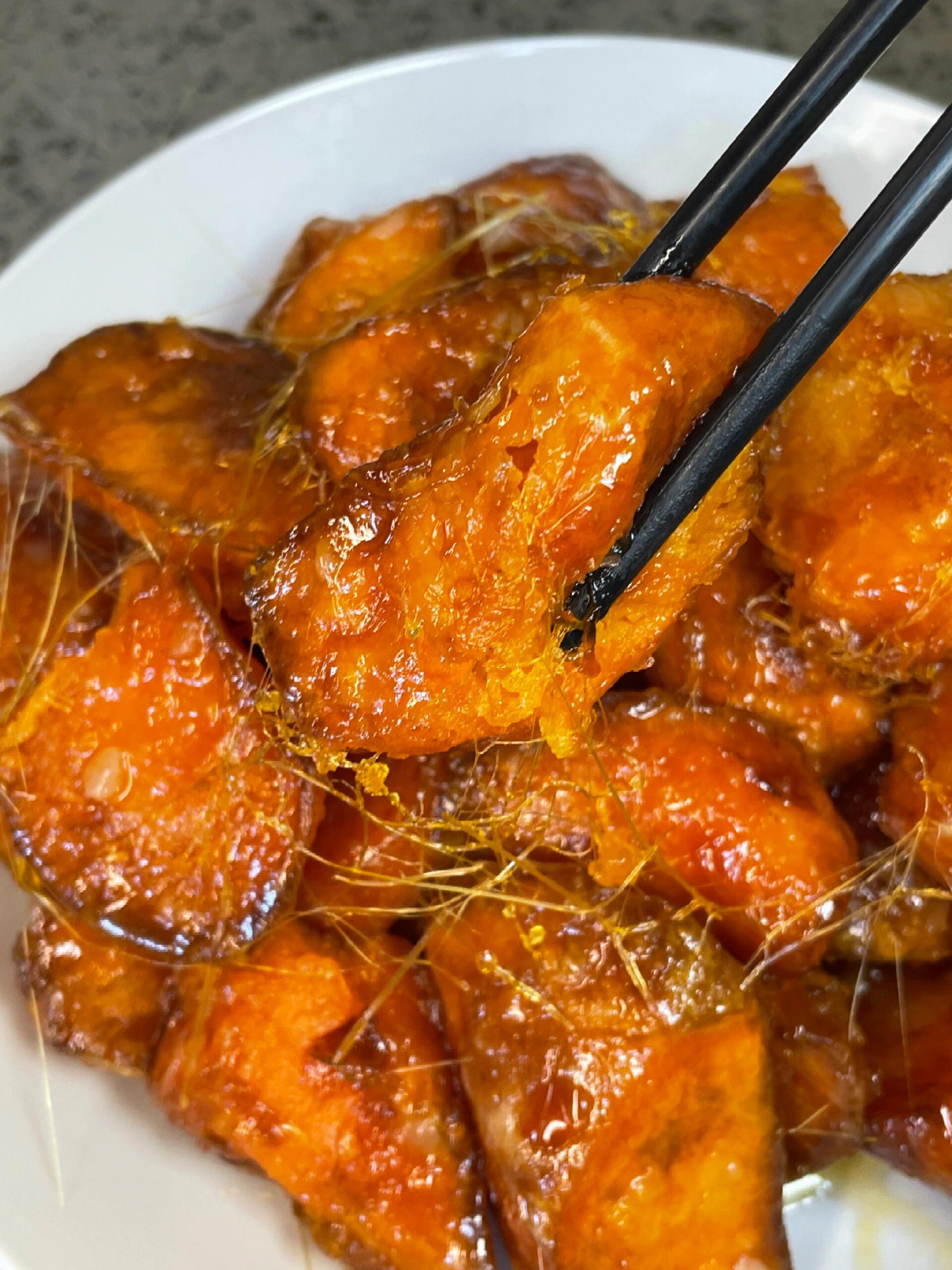 如果第一次拉丝不成功也别气馁——可能是糖浆熬的火候不够,或者地瓜块表面水分没沥干。多试几次,你就能掌握那微妙的琥珀色瞬间。剩下的糖浆锅也不用急着洗,倒点开水进去煮化,就是一杯带着焦糖香气的甜蜜糖水,一点不浪费。