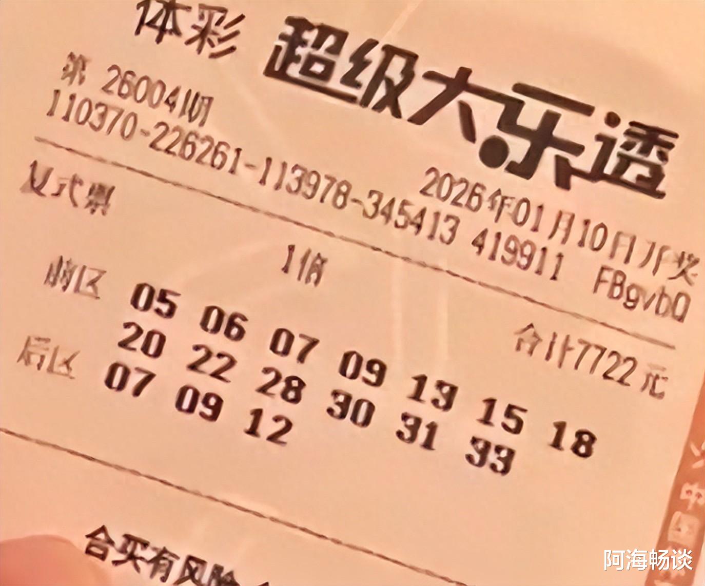 各位朋友,大家好。今天是2026年1月10日,农历十一月廿二,星期六。今晚即将迎来大乐透第26004期的开奖,不少朋友已经提前晒出了本期票面,氛围十分热闹。在关注本期之前,我们先来回顾上期(26003期)的开奖情况:一等奖共开出7注。具体分布为:河北(基本1注)、福建(基本1注,追加1注)、湖南(基本1注)、广西(基本3注,追加3注)、四川(基本1注)。二等奖则有122注,其中35注采用了追加方式,单注基本奖金117,604元,追加奖金94,083元。上期各地好运连连,本期又会有怎样的惊喜呢?接下来,就让我们一起看看本期的精彩晒票吧!