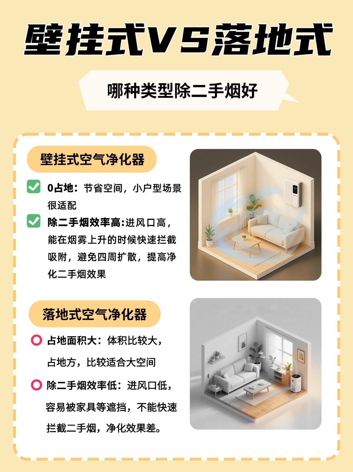 什么空气净化器去烟味效果好?办公室东西多、电线多,落地机很占地方,也容易被撞。壁挂式装好就不动了,高位进风覆盖更均匀,会议室、开放区都适用。