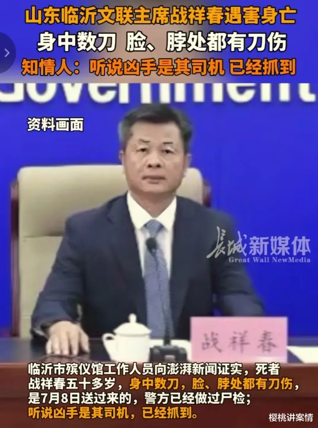 据澎湃新闻报道,山东省临沂市文联主席战春祥,被人残忍杀害。