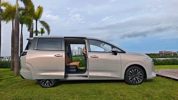 纯电车型采用封闭式格栅,插混和燃油车采用黑色的网状格栅设计,气质这一块儿拿捏得比较到位。而且,星光730不仅采用了侧滑门设计,同时它的侧滑门轨道还能隐藏在侧窗下方。从我的主观感受来看,星光730的外部质感应该是不输GL8陆上公务舱的,有一些二十万级MPV的气质。